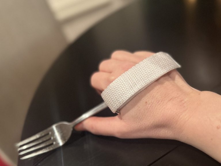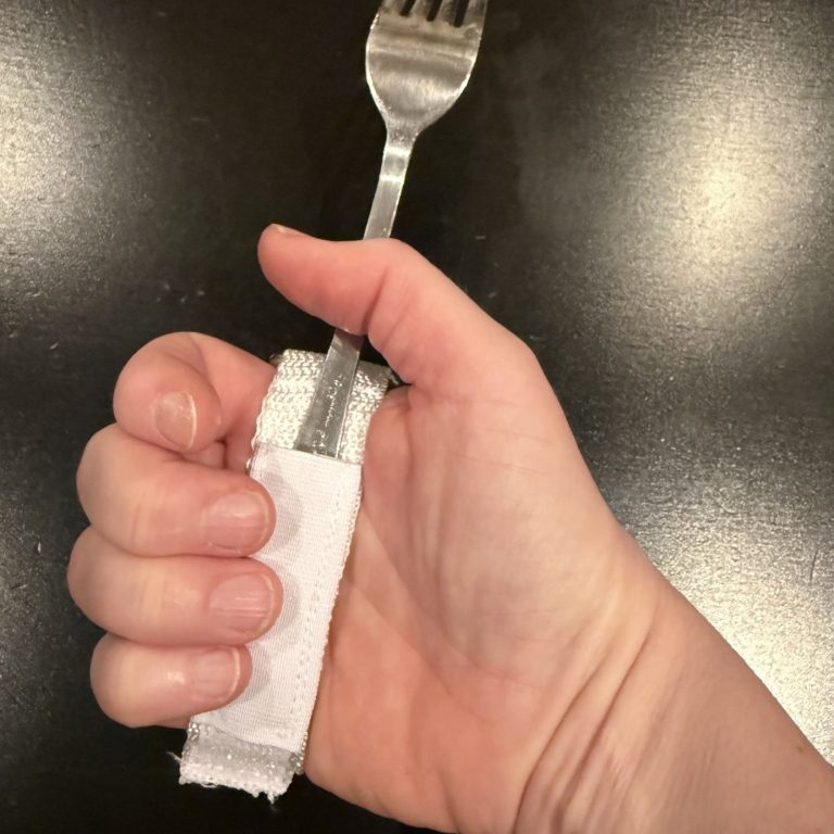 Ett smidigt och justerbart band som håller besticket stadigt i handen – utan att du behöver anstränga greppet. Perfekt vid nedsatt handstyrka, stelhet eller skakningar.