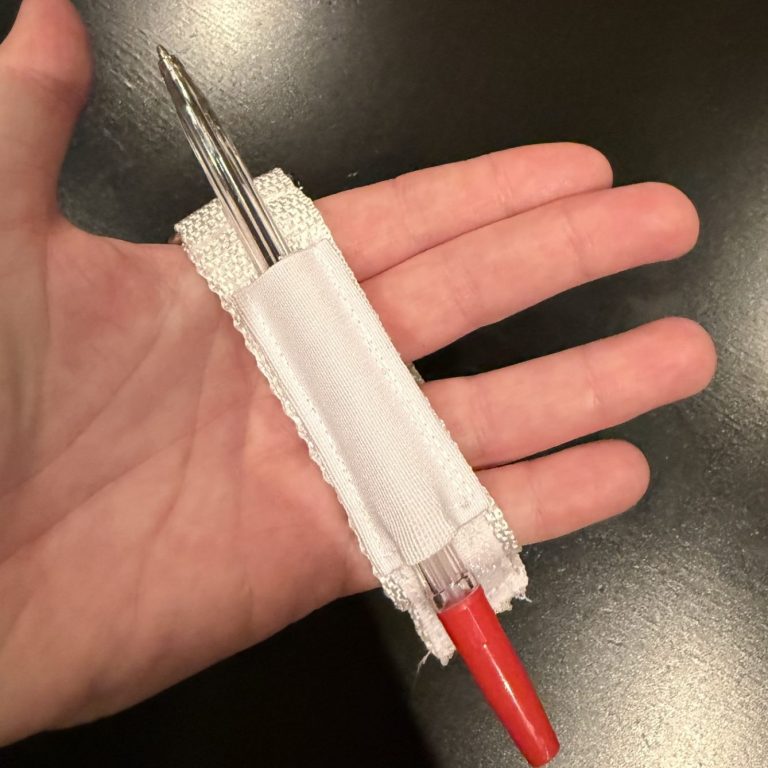 Det går även att placera en penna i ”hållaren” då det finns en mindre öppning i bakkanten.